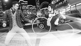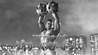 괴력으로 맨홀 뚜껑을 휘둘러 소용돌이를 일으키는 사에지마. 그 바람은 주위의 간판이나 차량마저 끌어들이며 철괴의 폭풍이 되어 적을 습격한다.