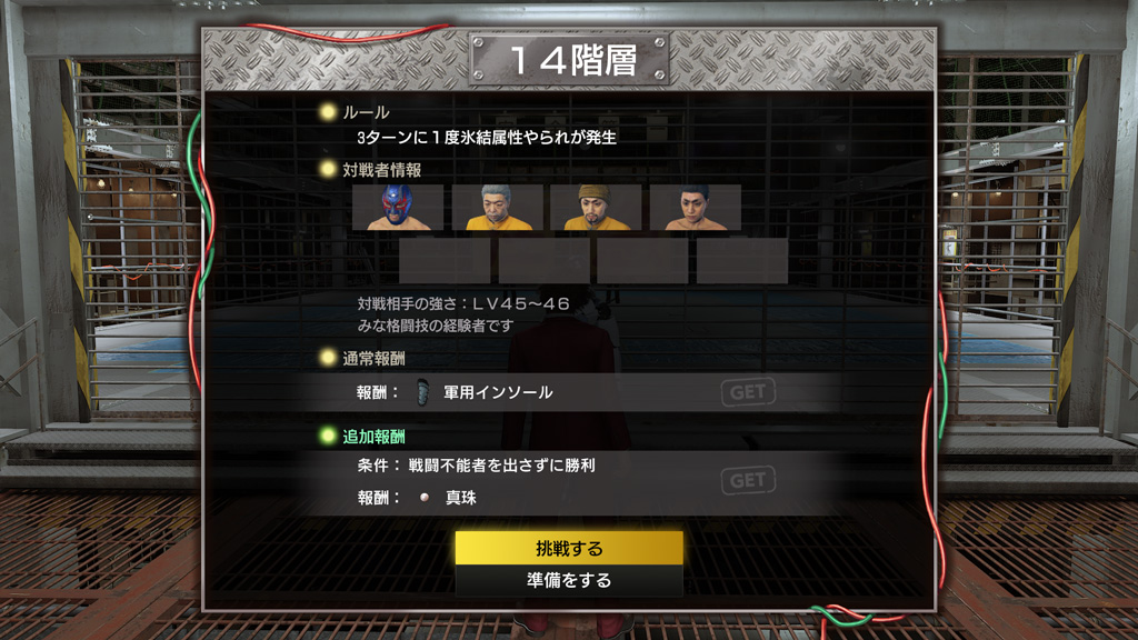 배틀 정보 화면에서는 특수 규칙, 적의 능력, 보수에 대해 확인할 수 있다. 층에 따라서 적도 규칙도 다르다.