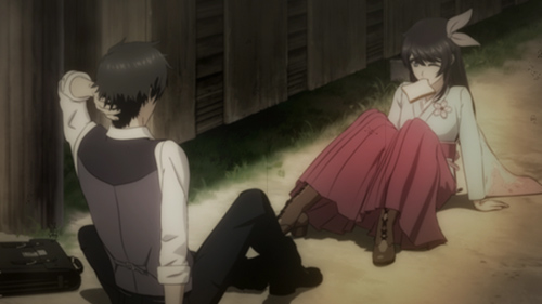 도서실에서 책을 꺼내려다 손과 손이 닿는 카미야마와 클라리스.